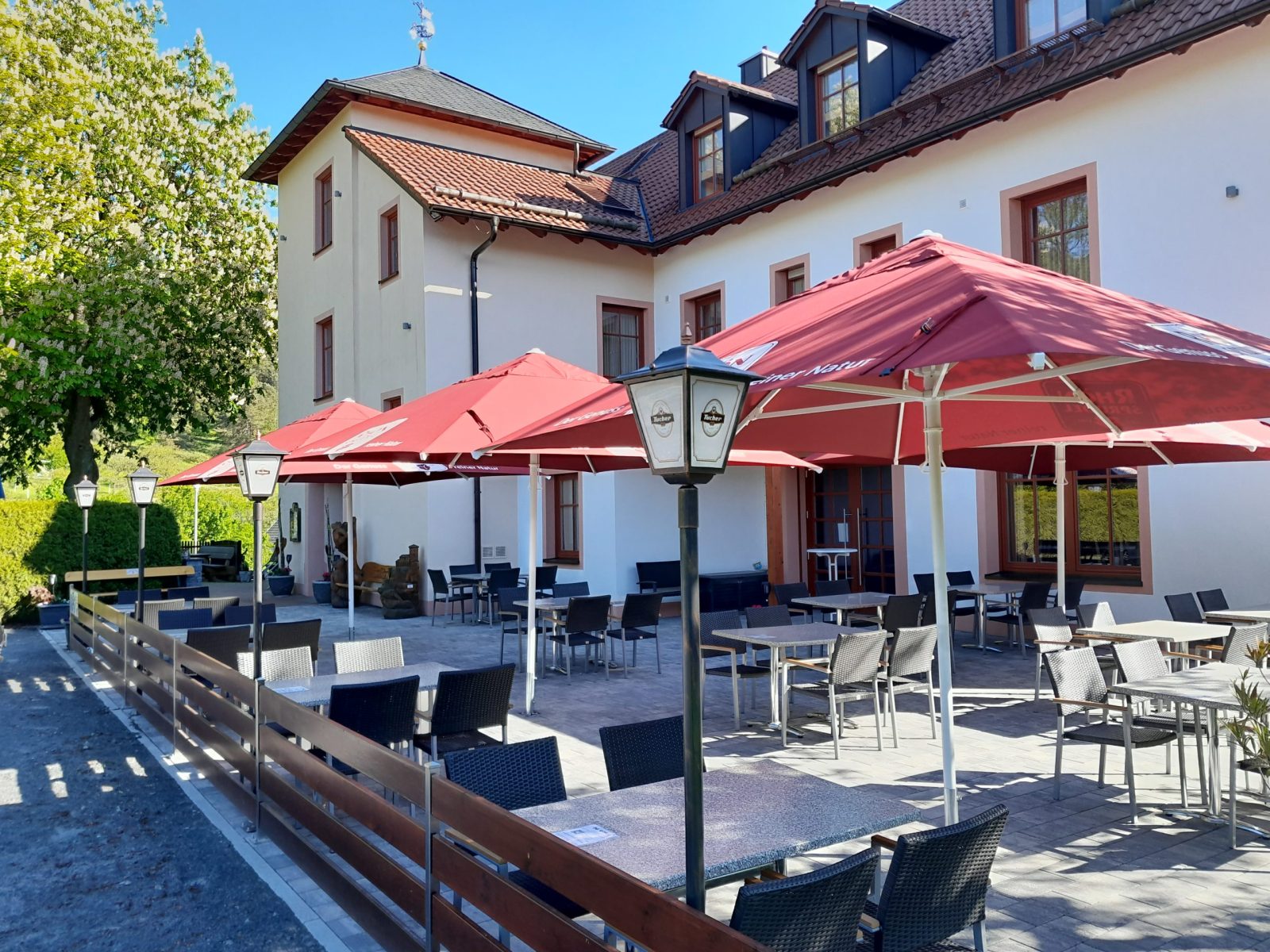 Genießen Sie die Ruhe unter Kastanienbäumen in unseren Biergarten